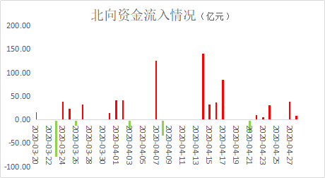 近期市场表现乍暖还凉,让客官一时难辨方向。此时,聪明的资金已经做出了决断,wind数据显示,自3月20日至4月28日,净流入超过570亿元,3月份北上资金有流出的情况,但四月以来这一情况出现反转,4月净流入达532.58亿元,其中沪股通累计净流入236.96亿,深股通累计净流入295.61亿。