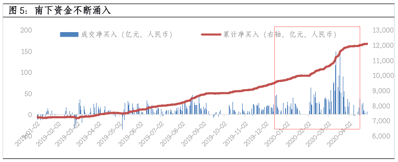 今年以来,尽管港股表现不尽如人意,但南下资金的涌入热情却并没有受此影响。截至4月29日,南下资金今年累计流入2380.29亿元人民币,而去年全年流入额为2460.53亿元;加速布局港股底部区域的意愿非常强烈。