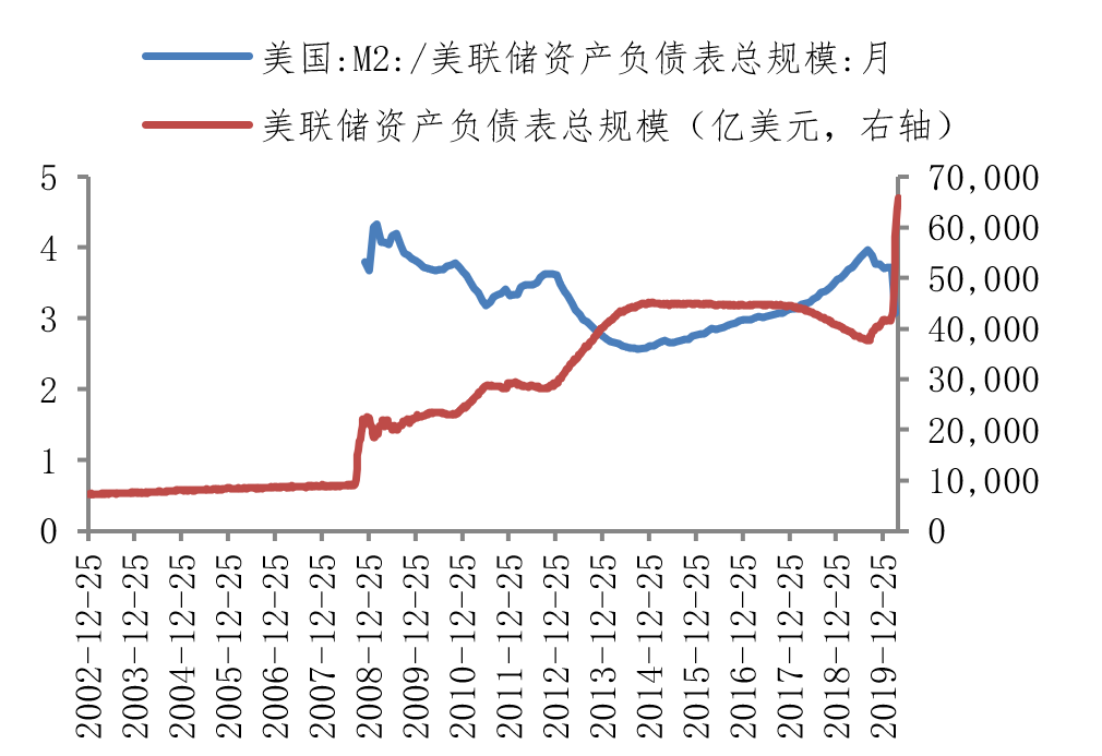 疫情爆发后,美联储“史诗级”的货币宽松,释放天量流动性。美联储资产负债表3月4日规模为4.24万亿,4月22日为6.57万亿,期间规模扩张2.33万亿;而美国M2相对于美联储资产负债表倍数在2.5-4.3之间。这意味着,在此期间美联储向市场投放了约5.83-10.02万亿美元的M2,约合人民币为40.81-70.14亿元。充裕的资金面,使得前期暴跌的美股迅速反弹。即使昨日公布的美国一季度实际GDP萎缩4.8%,但依旧挡不住盘中美股强势上涨的步伐。