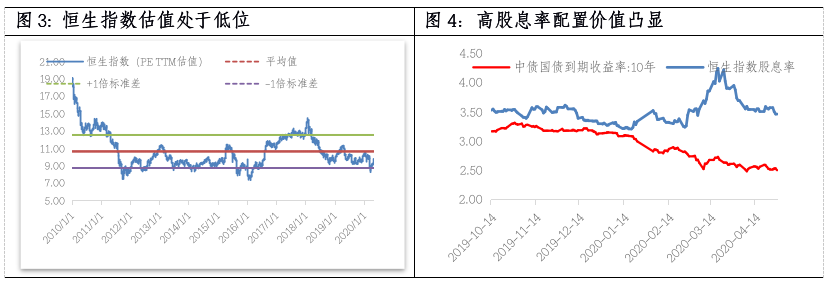 事实上,在美元流动性危机解除之后,港股自年内低点有所反弹。恒生指数3月20日至4月29日上涨13.52%,但相较于美股强势反弹,整体略显谨慎和犹豫。不可否认,疫情对基本面的冲击已成事实,但港股当前极低的估值隐含了基本面下行的悲观情景,而随着疫情形势好转和内地政策的发力,港股中中资股盈利复苏可期。处于价值洼地的港股,欠缺的或只是时间和耐心。