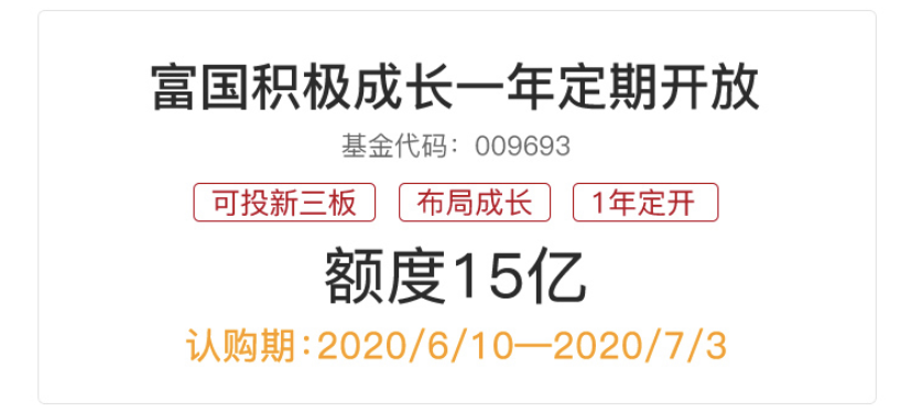 富国积极成长一年定开将重点关注新三板精选层股票,策略层面着重遴选盈利模式清晰、业务快速发展、已初步具有盈利能力的成长型公司,或者是面向市场高度认可、研发创新能力强的创新型企业,主要布局“新能源、科技、医药、军工”行业中以技术创新为主要增长驱动力的公司!