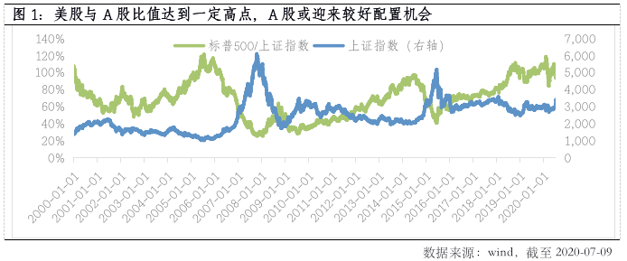历史上每当美股与A股的比值达到历史高点的时候,往往A股会出现较好的配置机会。这一轮特别显著,一方面美股相对于A股的涨幅到了高点,类似于2006年和2014年的状况;另外一方面在于,这一轮A股市场还面临着一个开放的环境,海外流动性充裕之下,迎接来自全球资金的配置需求。wind数据显示,4月以来,北上资金连续3月净流入,流入额分别为533亿元、301亿元、527亿元,7月以来日均流入更是达到105亿元。