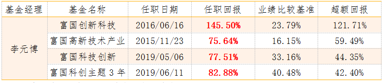 集“科技实业+科技研究+科技投资”经验于一身,才能在“创新”的赛道上“脱颖而出”。在进入公募基金行业的前两年,李元博在实业积累了颇为丰富的经验,正是实业的研究经验,使得他对于产业链上下的把握更为精准。随后在汇丰晋信打下TMT研究经验并在2014年开始管理科技类产品,2015年进入富国基金,目前管理了富国高新技术产业、富国创新科技、富国科技创新、富国科创主题3年等四只基金,四只产品任职回报均超过75%。
