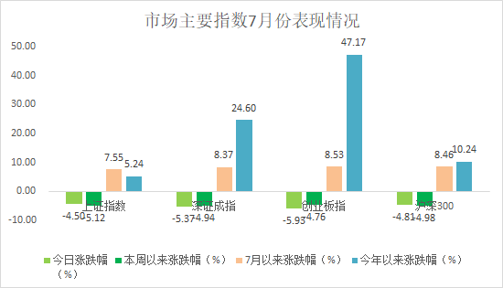 最近三个交易日,各大指数及板块的主旋律就是一个字:跌,今天尤为明显。其中上证指数、深证成指、创业板指、沪深300分别大跌4.50%、5.37%、5.93%、4.81%,28个申万一级行业全线受挫。从各行业的表现来看,大消费板块领跌,TMT板块调整次之。