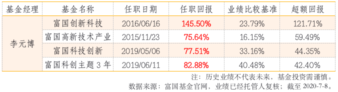 注1:李元博自2009年在湘财证券任研究员,自2010年在天治基金任研究员,自2011年在汇丰晋信基金任研究员、基金经理,2015年7月加入富国基金,现任富国高新技术产业(2015年11月起任)、富国创新科技(2016年6月起任)、富国科技创新(2019年5月起任)和富国科创主题3年(2019年6月起任)基金经理。