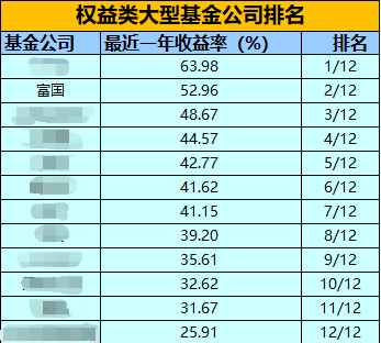 记者注意到,富国基金在权益、债券两个公司榜单中近一年(截至6月30日,下同)平均业绩都表现不俗。以52.96%的业绩排在12家权益类大型公司中排名第2;以4.99%的平均业绩排在11家固定收益类中型公司中第3。