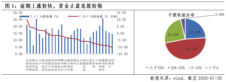 7月1日至7月14日期间,市场上涨节奏较快,资金“落袋为安”的意愿较强。