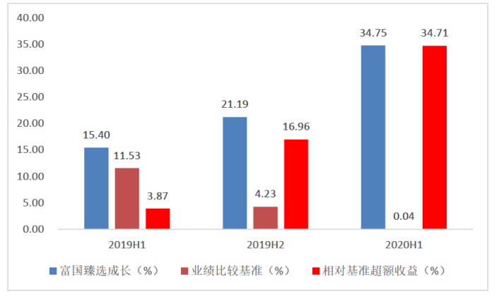 注:基金经理过往业绩不代表未来收益,基金经理管理的其他基金的过往业绩不构成对新基金业绩表现的保证。富国臻选成长成立于 2018-08-15,业绩比较基准为中证 800 指数收益率*40%+中债综合全价指数 收益率*40%+恒生中国企业指数收益率(经汇率调整后)*20%,2019 年基金净值增长率与同期比较比较基 准收益率为 39.85%(16.25%),2020 年上半年基金净值增长率与同期业绩比较基准收益率为 34.75% (0.04%)。
