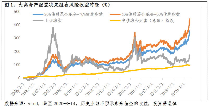 马拉松圈子有句名言,最终是否胜利,并不决定起跑时的速度,而在于均匀的发力。对应到投资,理想情况下基金净值曲线是时间的单调递增函数,“股-债-现金”的配置正是“快与慢”的平衡思考,实现进可攻,退能守!事实上,2005年以来30%偏股混合型基金指数+70%债券指数、40%偏股混合型基金指数+60%债券指数的累计收益率达到348.31%、432.78%,同期上证综指、中债综合财富(总值)指数收益率仅为165.31%、94.90%,超额收益显著。