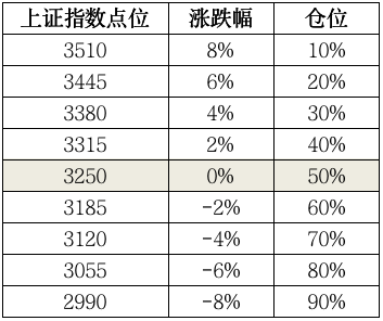 那么此策略下,上证指数点位所对应的仓位如下: