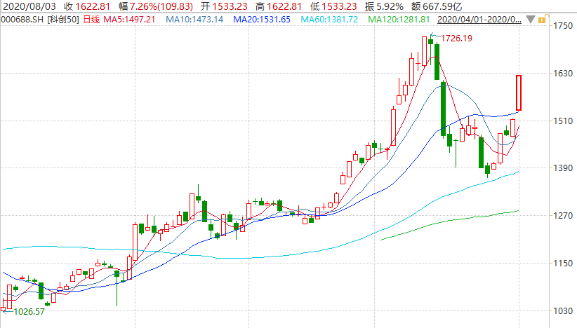 今天科创板大肆发威,科创50指数收盘涨幅高达7.26%。