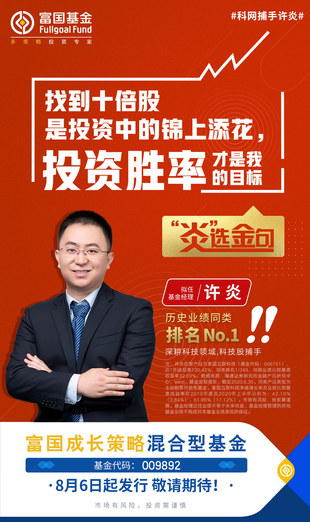 不过,富国除了李元博,还有另一位很懂科技股的基金经理,被称为''科网捕手''的许炎。许炎的赫赫战绩最近富二已经讲了很多遍了,他所将管理的富国成长策略(009892)即将在8月6日发行,具体可以点击文末链接参见这只产品的介绍。