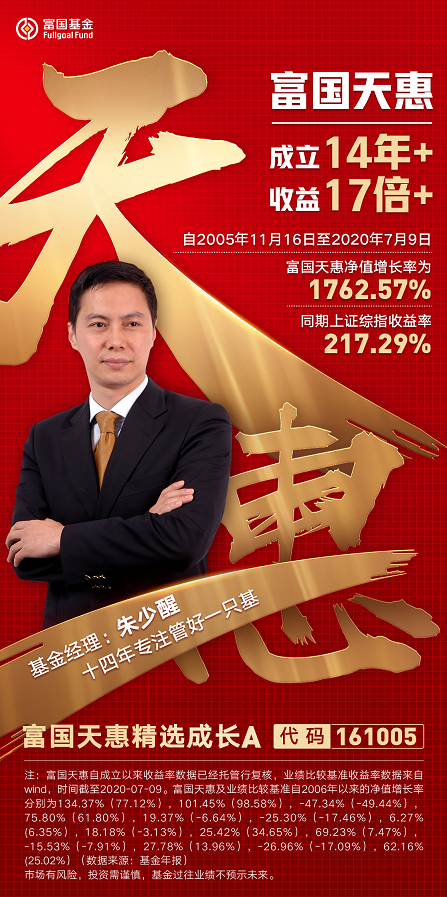 更为难能可贵的是,这只基金由富国基金副总经理朱少醒管理,也是他名下唯一一只基金,同时也是全市场26只回报超10倍的公募基金中,唯一没有更换过基金经理的基金。(数据来自wind,时间截至2020年7月9日)