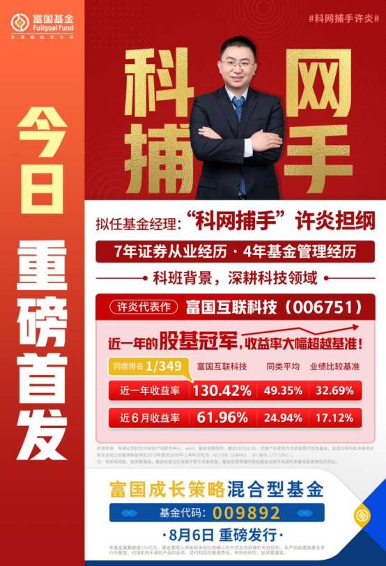 科技小王子、股基冠军、富二家近期超“火”的基金经理许炎,他的全新力作——富国成长策略(009892),今日盛大发行。