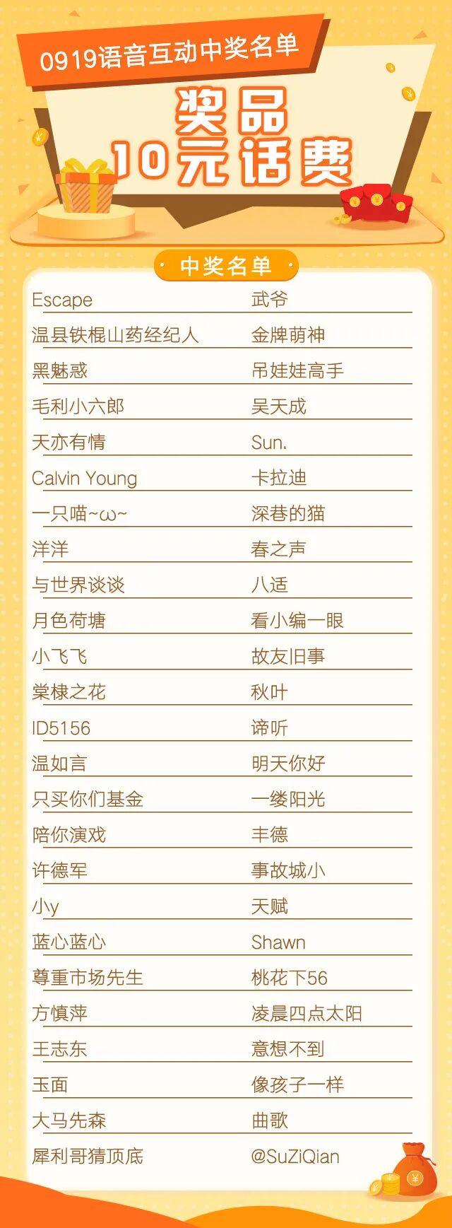 话费将于9月25日(本周五之前)充值到中奖客官后台预留的手机号码中,请各位客官耐心等待~