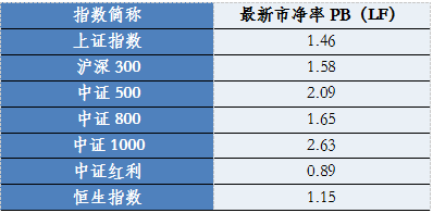 表3:部分指数最新市净率