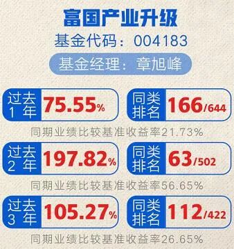 注1:富国产业升级分阶段业绩数据及同类排名来自海通证券研究所金融产品研究中心,同类主动混合开放型——强股混合型;业绩比较基准来自wind,截至2020-12-31;注2:富国产业升级成立于2017年6月9日,章旭峰于同日开始管理。富国产业升级自2017年至2019年及2020年上半年的净值增长率及其业绩比较基准分别为22.73%(10.38%),-31.08%(-19.78%),69.65%(28.68%),27.94%(1.71%),数据来自定期报告,截至2020-6-30;注3:基金管理人的历史业绩不代表未来,也不构成对其他产品的业绩保证,市场有风险,投资需谨慎。注4:章旭峰在管其他产品情况,富国国家安全主题基金成立于2015年5月14日,章旭峰自2020年7月30日起管理,因管理时间较短暂不披露业绩。其中尤值得一提的是,富国产业升级基金近两年收益率直逼200%,在一晃而过的两年维度里,或许这就是“单车变摩托”般的体验,妙哉~