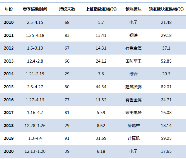 表1:历年“春季躁动”