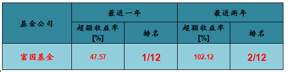 除了平均成绩优秀外,富国基金主动权益类超额收益也不俗,海通证券数据显示,富国基金权益类资产过去1年的超额收益率达47.57%;过去两年的超额收益率达102.12%