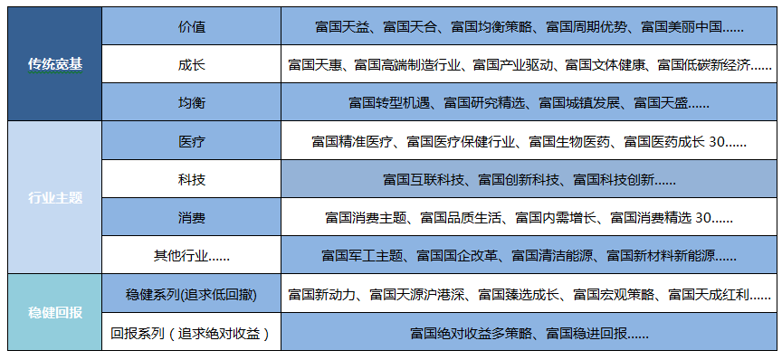 富二家的主动权益产品根据相对收益和绝对收益两大类,也做了一个大致的分类: