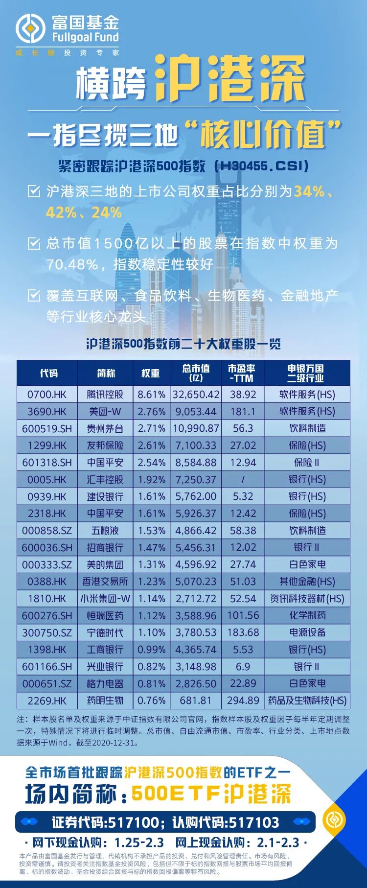 500ETF沪港深(认购代码:517103)作为ETF类型基金,具有分散投资、持仓透明、满仓运作、低费率、交易方便灵活的特点,适合作为投资者一键配置的工具。
