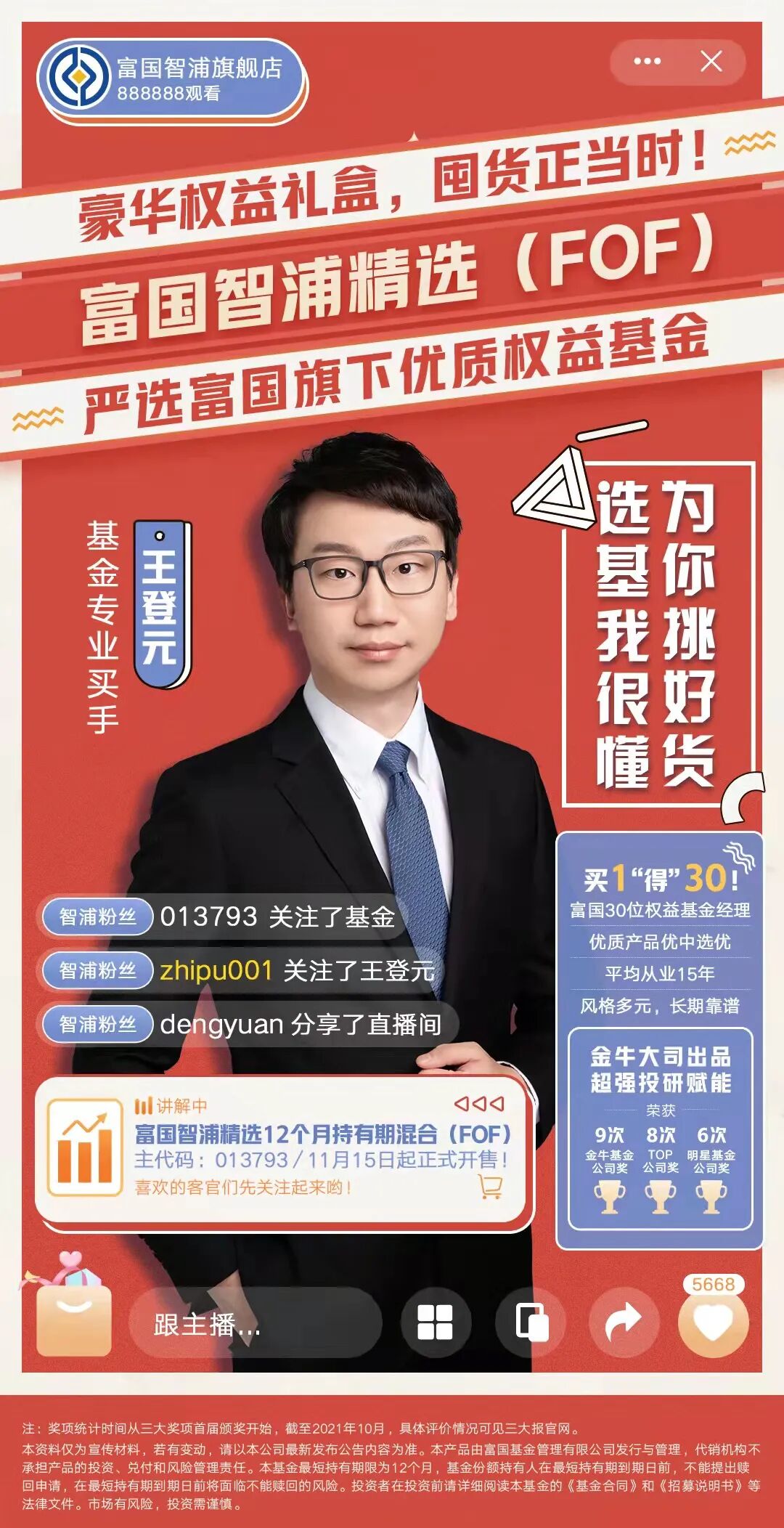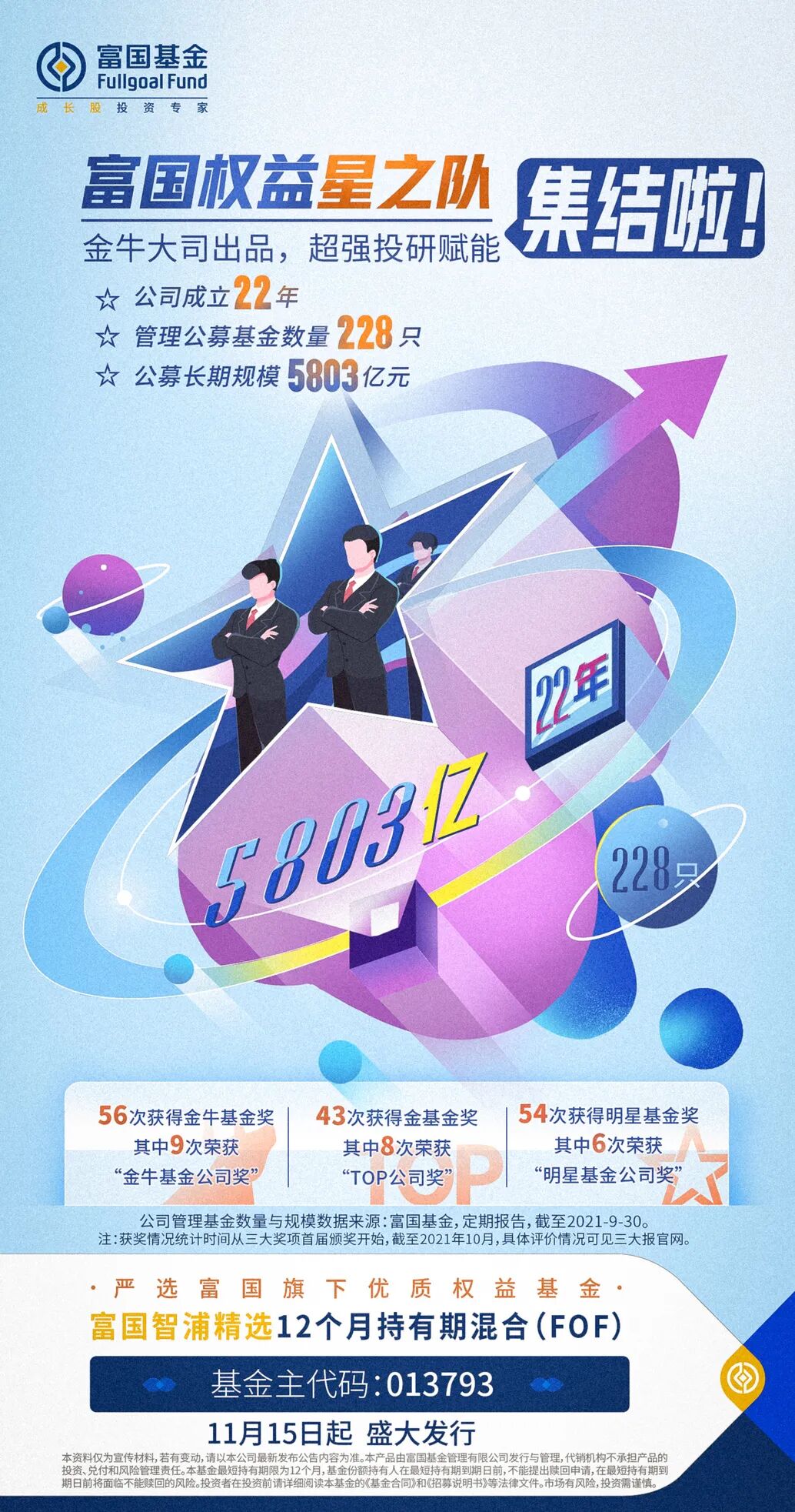富国智浦精选FOF,它出自金牛基金公司,它会买自家优质主动权益基金,它由专业且绩优的基金经理王登元精挑细选,它11月15日正式发行!
