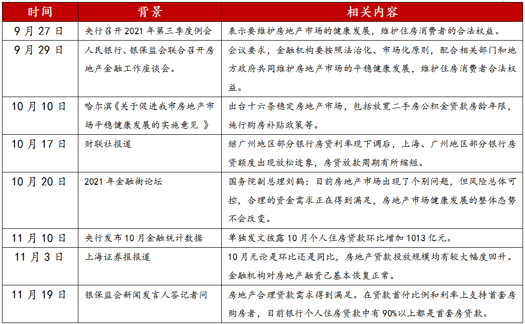 表1: 9月底以来房地产利好信号梳理