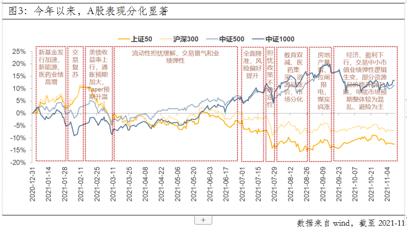▍ 其一,从货币政策看,中国和美国、欧洲等发达国家存在分化。今年来,我国采取了相对稳健、灵活的货币政策,而欧美央行则继续在量化宽松的道路上不断前行,根据wind统计,今年以来,欧美央行扩表规模仍有近3万亿美元。受益于持续的“放水”,美欧股票市场,甚至美国的房地产市场相对走强;反观国内市场,无论是财政后置、还是地产调控升温、金融防风险,A股市场波动加大,房地产也缺乏系统性机会。