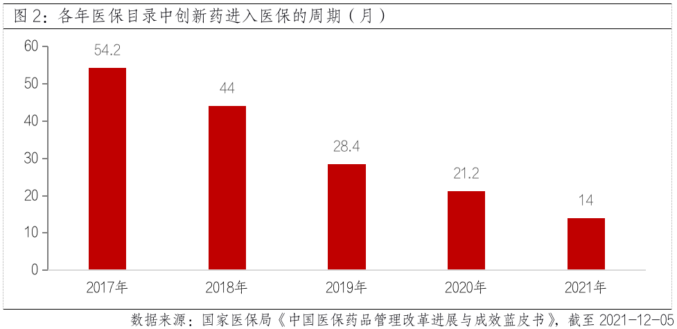 回顾每一轮创新药的医保谈判,似乎降价都是主旋律,但对于药企而言“以量换价”的背后,也大幅缩短了创新药从上市到纳入医保的时间。数据显示,2017年的新药从上市到进入医保花4-9年不等,2019年缩短至1-8年,2020年进一步压缩至0.5-5年,而本次医保谈判,更是将2021年6月30日前上市的创新药即纳入参与,基本实现了药品审评和医保审评的“无缝衔接”,也基本成为国产创新药纳入医保目录的主要方式,加速了创新药的放量,提高企业研发动力。同时今年多个高价值的罕见病药首次进医保,也预示着医保开始关注罕见小病种,有助于促进国内创新药企业布局罕见病创新药的热情,积极传递“鼓励创新”信号。