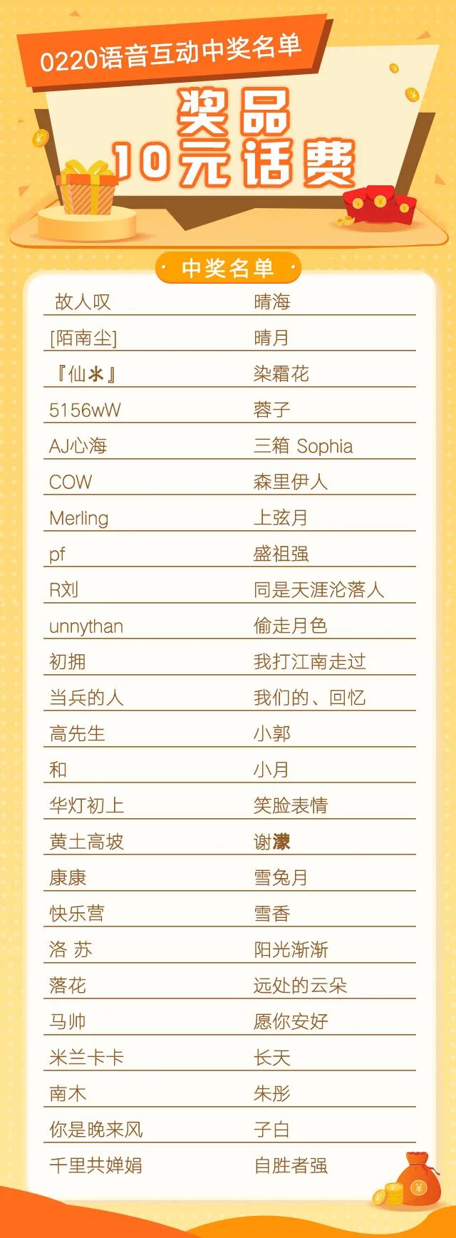 话费将于2月25日(本周四之前)充值到中奖客官后台预留的手机号码中,请各位客官耐心等待~
