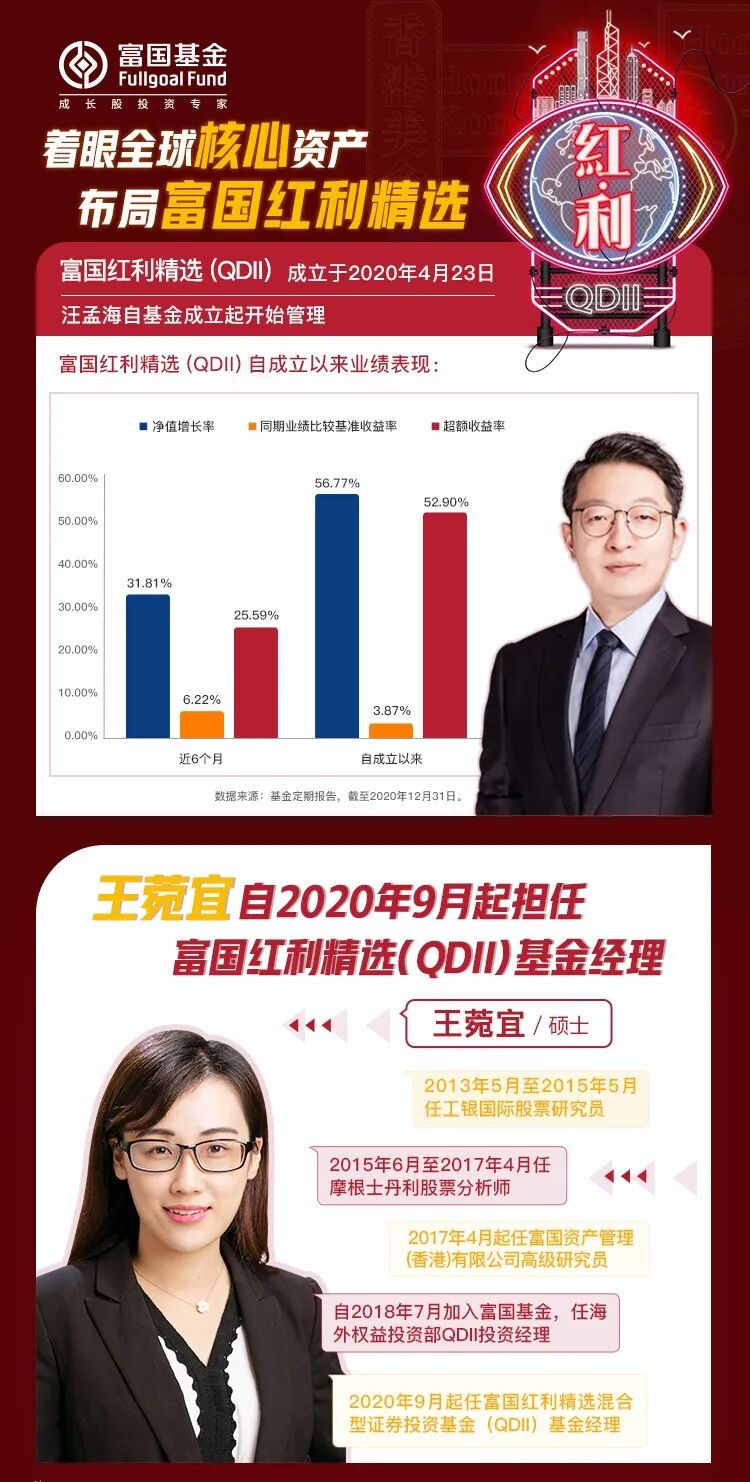 富国红利精选(QDII)基金经理为金牛基金基金经理汪孟海,其管理的富国沪港深价值获得过中证报“金牛基金”、证券时报“明星基金”、上证报“金基金”三大奖项,妥妥的大满贯得主。