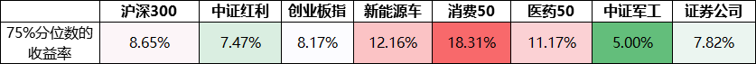 对于消费、医药这类成长性行业来说,定投的收益中位数处在7%-8%的区间,如果客官们定投的是这类行业,那么可以考虑将止盈点提高为年化收益率15%左右。