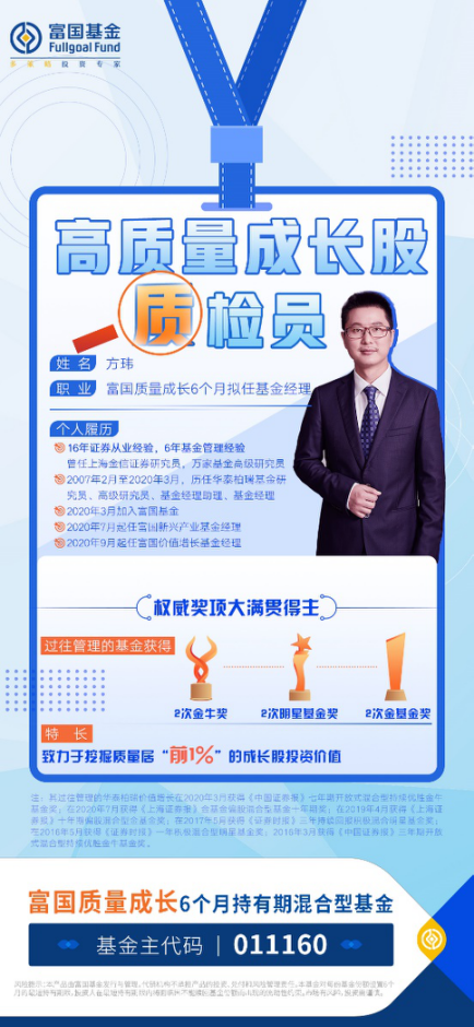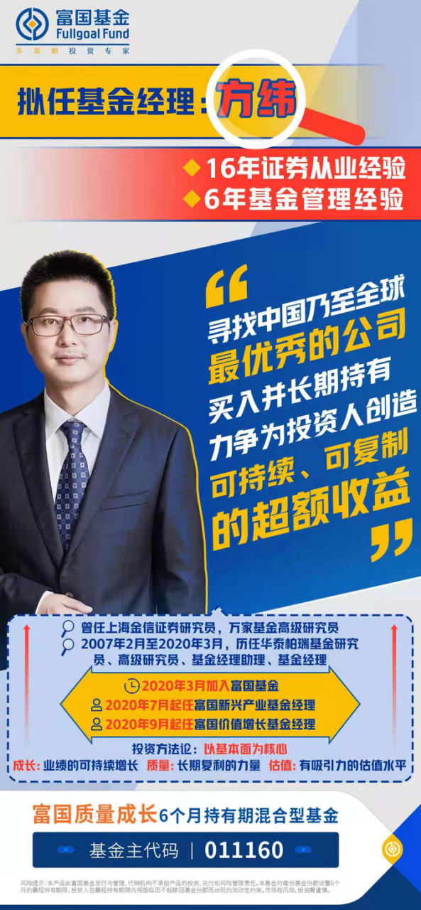 拟由方纬担任基金经理的富国质量成长(主代码:011160),同样延续了方纬积累十余载的投资心得与理念,将专注于投资具有可持续、高质量成长且估值具有吸引力的公司。