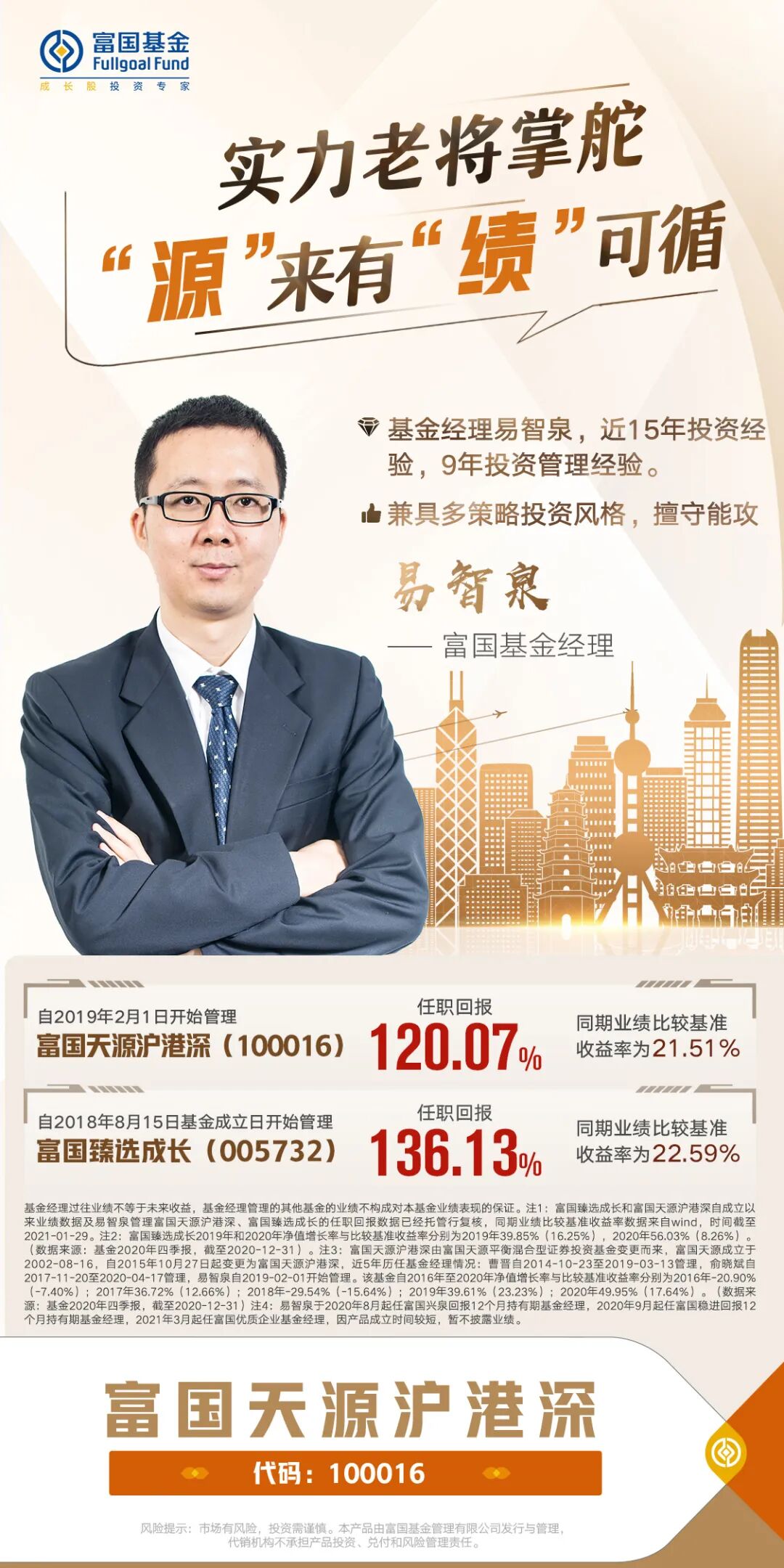 掌舵富国天源沪港深的基金经理,正是富二家有近15年证券从业经历、“善攻会守”、兼具多策略风格的投资老将易智泉。