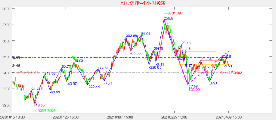基于价值中枢的对称原理,如果当下大盘继续处于震荡格局,那么该震荡区间的下边界或许在3403左右。如果一定要测算潜在的第二支撑位,那么可把前期最为重要的价值中枢3530作为上界,把当前新的价值中枢3449作为对称轴来做简单估算,考虑到该第二潜在支撑位或将与前期两次得到支撑的200日均线基本重合,因而有望成为4月份中比较重要的支撑位。