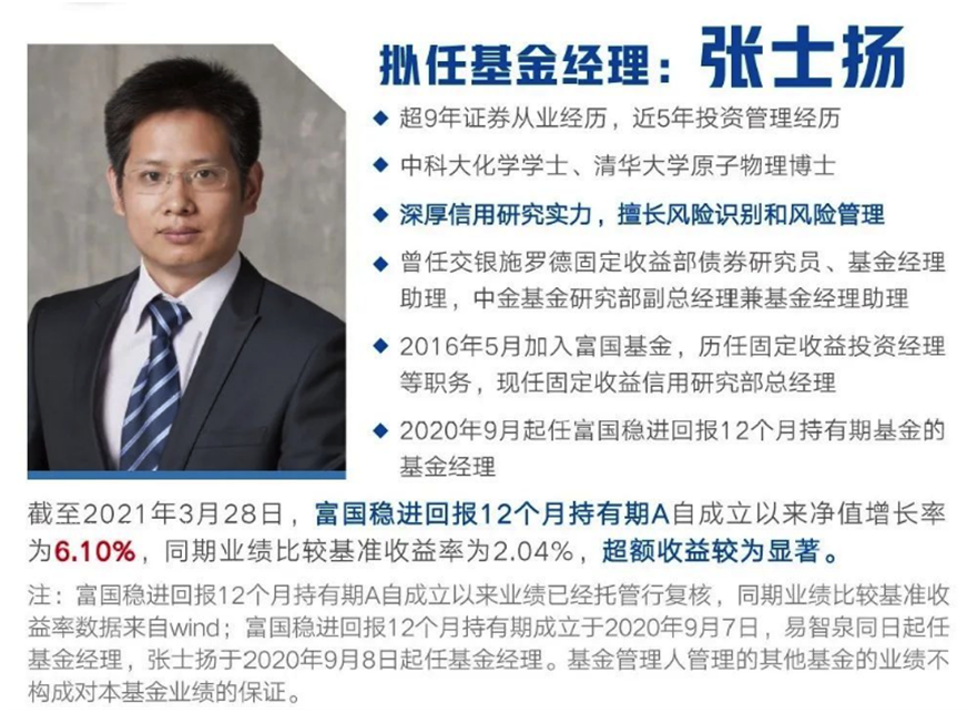 清华大学博士、富国固定收益信用研究部总经理张士扬,负责这只基金的头寸管理及债券投资。