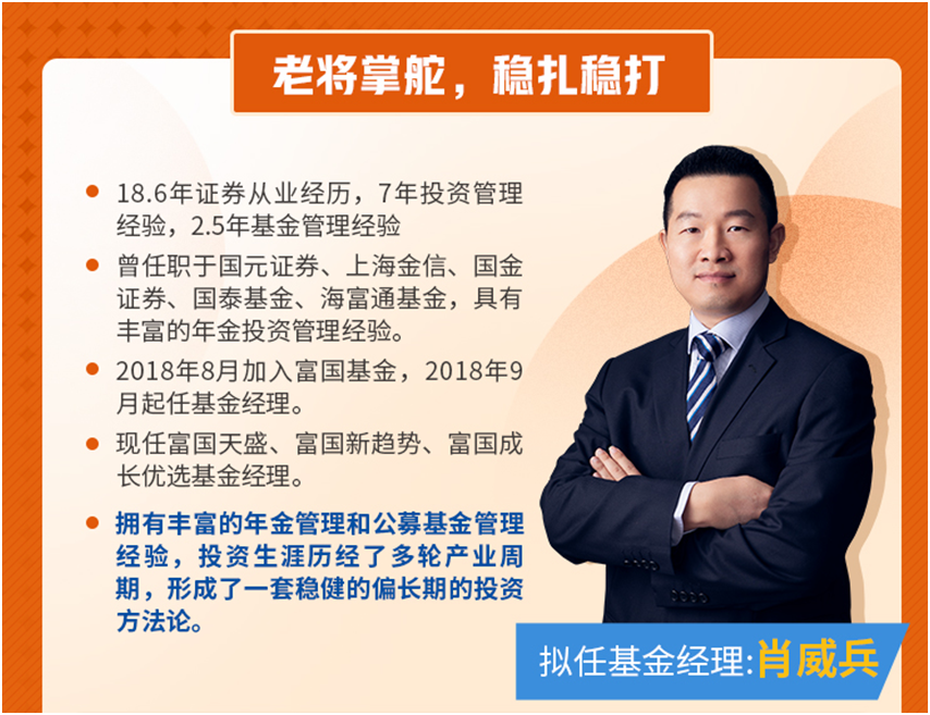如今,经历了年前市场的火爆和年后的大幅回调,主张稳扎稳打的肖威兵心态依旧从容,“投资观如人生观”,向往岁月静好、稳健增长,保持初心,也希望投资者们能和自己一样,不在短期的波动中迷失自己。而富国稳健增长将成为这种投资观的实践载体,在认准投资目标的情况下,聚焦优质企业并兼顾风险控制,力争为基金份额持有人获得超越业绩比较基准的收益。