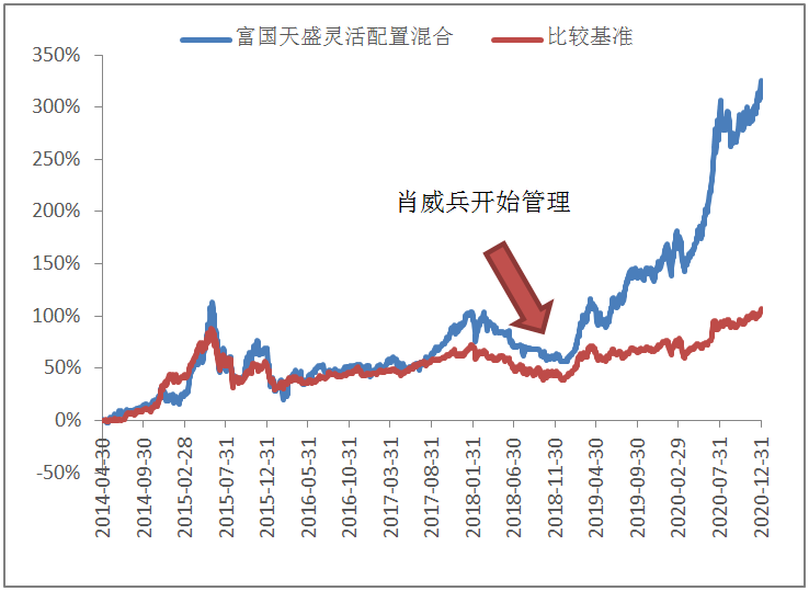 以肖威兵进入富国基金后的“代表作”富国天盛为例,基金定期报告显示,截止2020年底该基金近两年总回报达到138%,同类排名前10%。肖威兵自2018年9月执掌富国天盛以来,该基金净值不断创出新高,过去四个半年度收益率均超过20%,在不同市场风格下,纷纷实现了持续的超额收益。