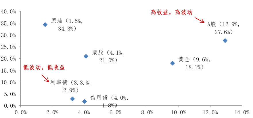 图1:过去16年各资产类别风险收益特征