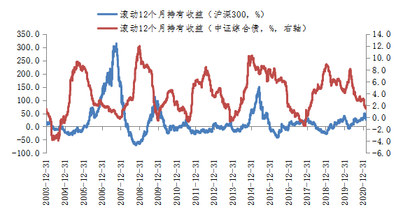 图2:股债收益整体呈现负相关,可以用债券收益对冲股票回撤