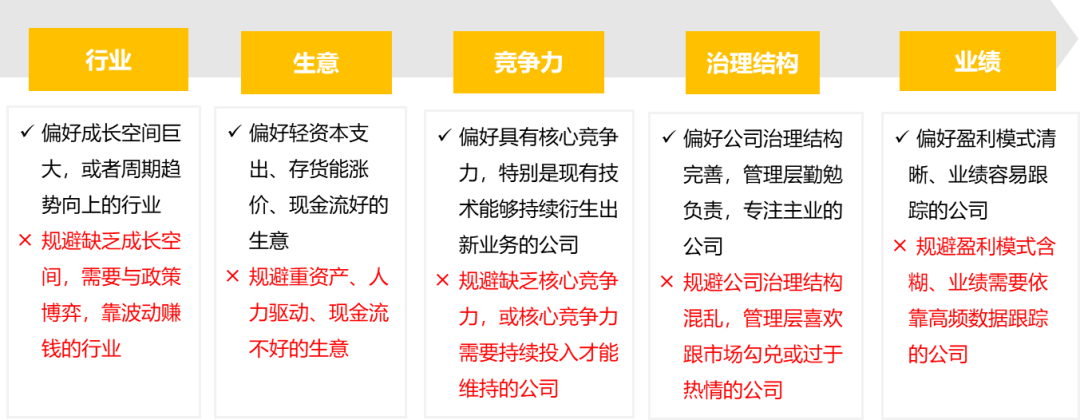 图4:徐斌按照五大维度选股,有所为、有所不为