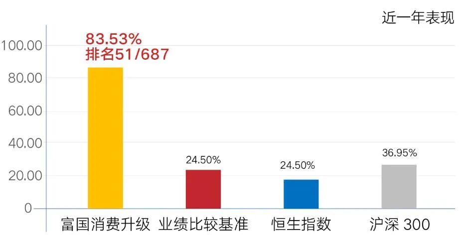 富国消费升级基金,近一年业绩显著超越业绩基准及恒生指数、沪深300,同类排名前10%!
