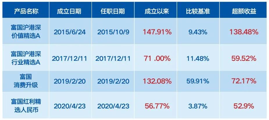 注1:所管理产品成立以来的净值增长率、同期业绩比较基准收益率、超额收益数据来自基金2020年第四季度季报,截至2020-12-31;富国沪港深价值、富国消费升级同类排名相关数据来自海通证券基金研究中心,富国沪港深价值、富国消费升级类别分别为灵活策略混合型、强股混合型,业绩比较基准、恒生指数、沪深300指数数据来自wind,截至2021-03-31; (1)富国沪港深价值A基金成立于2015-6-24,2016-2020年度基金净值增长率及同期业绩比较基准(沪深300指数收益率×45%+恒生指数收益率×45% +中债综合财富指数收益率×10%)收益率为2.63%(-4.35%)、41.59%(25.73%)、-14.22%(-16.91%)、28.15%(20.45%)、56.76%(10.67%)。期间基金经理变更情况为:2015年6月-2018年7月由张峰管理,2015年10月至今由汪孟海管理。富国沪港深价值C成立于2020-12-29,因成立时间较短,暂不予展示业绩。 (2)富国沪港深行业精选A成立于2017-12-11,2018-2020年度基金净值增长率及同期业绩比较基准(恒生综合指数收益率*60%+中债综合全价(总值)指数*30%+沪深300指数收益率*10%)收益率为-8.55%(-11.27%)、24.04%(10.56%)、47.73%(10.54%)。汪孟海自产品成立至今开始管理。富国沪港深行业精选C成立于2020-12-30,因成立时间较短,暂不予展示业绩。 (3)富国消费升级成立于2019-2-20,2019-2020年度基金净值增长率及同期业绩比较基准(申银万国消费品指数收益率*30%+中证港股通大消费主题指数收益率*30%+中证沪深港1100TMT指数收益率*20%+中债综合全价(总值)指数收益率*20%)收益率为23.32%(15.11%)、88.19%(38.92%)。期间基金经理变化情况为:自成立以来由汪孟海管理,2020-8-17增聘张慕禹为基金经理。富国消费升级C成立于2021-3-9,因成立时间较短,暂不予展示业绩。 (4)富国红利精选(QDII)成立于2020-4-23,2020年度基金净值增长率及同期业绩比较基准(恒生高股息率指数收益率(经汇率估值调整)*60%+中证红利指数收益率*30%+中债综合财富指数收益率*10%)收益率为56.77%(3.87%)。期间基金经理变更情况为:自成立以来由汪孟海管理,2020-9-17增聘王菀宜为基金经理。 以上所有数据均来自各基金定期报告,截至2020-12-31;基金的过往业绩及其净值高低并不预示其未来业绩表现,基金经理管理的其他基金的过往业绩不构成对新基金业绩表现的保证。 Q4:拟任基金经理汪孟海的投资风格及选股策略是怎么样的?