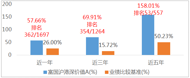 (1)富国沪港深价值A基金成立于2015-6-24,2016-2020年度基金净值增长率及同期业绩比较基准(沪深300指数收益率×45%+恒生指数收益率×45% +中债综合财富指数收益率×10%)收益率为2.63%(-4.35%)、41.59%(25.73%)、-14.22%(-16.91%)、28.15%(20.45%)、56.76%(10.67%)。期间基金经理变更情况为:2015年6月-2018年7月由张峰管理,2015年10月至今由汪孟海管理。富国沪港深价值C成立于2020-12-29,因成立时间较短,暂不予展示业绩。