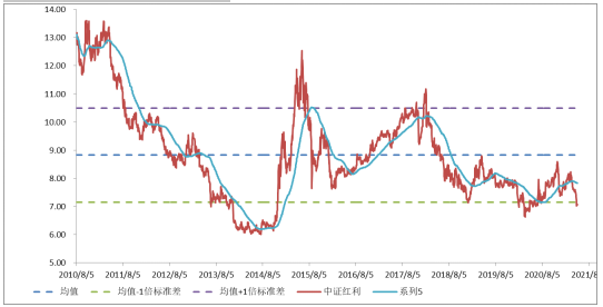 图:中证红利的PE估值走势