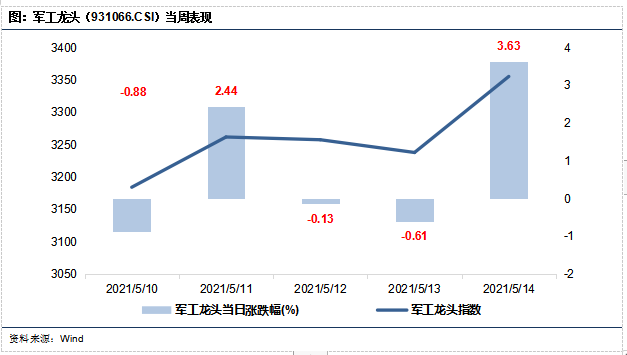 上周军工龙头整体上涨,周指数涨幅为4.45%,同期沪深300涨跌幅为2.29%,跑赢沪深300指数2.16%。