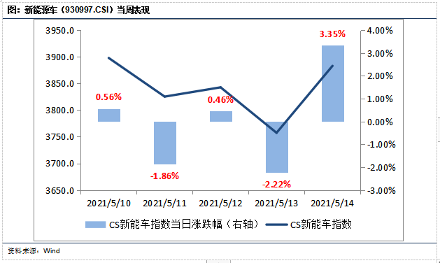 上周CS新能车指数震荡下行,但周五大幅反弹。全周收益率为0.18%,跑输舒痕300指数2.1%