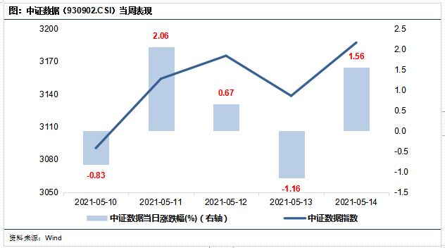 本周中证数据指数震荡上行,全周上涨2.28%,相较沪深300指数基本持平。