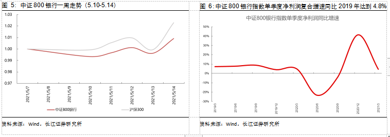 年报方面,银行板块整体的净利润同比增速为0.58%;一季报方面,银行板块整体的净利润(2019年为基准)复合增速为4.8%;业绩表现较亮眼。