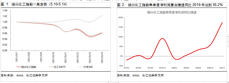 一季度经济数据靓丽,化工公司业绩普遍超预期,细分化工成分股中全部公司披露年报及一季报,年报方面,细分化工整体的净利润同比增速为20.83%;一季报方面,细分化工整体的净利润(2019年为基准)复合增速为55.22%。